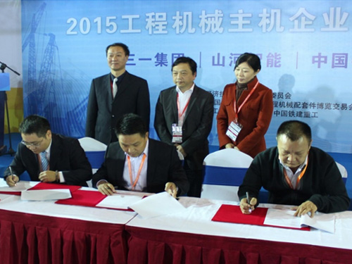 2015年11月9日,在湖南省政府舉行的”中國(長沙)國際工程機械配套件博覽交易會”上,(湖南副省長何報翔作重要講話)。南通科星化工股份有限公司作為三一重工唯一的化學化工原料供應商代表,科星總經理傅士超與三一集團總裁助理彭甜在簽約臺上簽訂2016年戰略合作協議。
