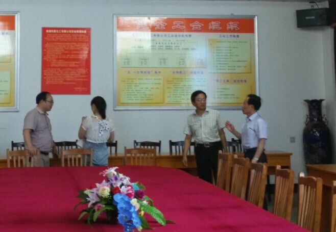 海安縣總工會陸威生主任一行來科星檢查指導工會工作