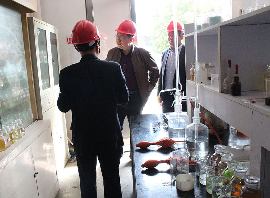 圖三 劉總在公司領(lǐng)導(dǎo)的帶領(lǐng)下參觀理化室