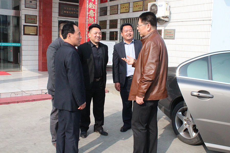 前左隆基集團(tuán)技術(shù)總工王軍、前中隆基集團(tuán)總經(jīng)理劉玉里、前右科星化工董事長(zhǎng)吳龍鐵、后排左科星化工銷(xiāo)售副總吳昌祥、后排中科星化工銷(xiāo)售經(jīng)理朱小明、后排右科星化工總經(jīng)理傅士超