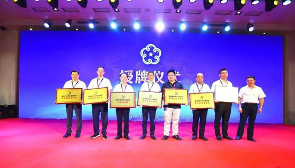 南通科星化工股份有限公司董事長(zhǎng)吳龍鐵(左三)上臺(tái)領(lǐng)獎(jiǎng)
