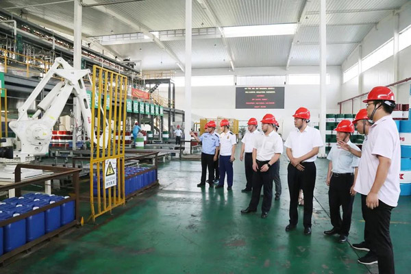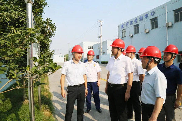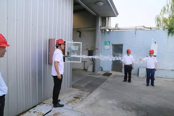 2020年9月7日,海安市委常委、副市長盧忠平帶隊,對科星化工生產廠區開展安全工作檢查。每到一處,消防、環保等領域專家認真仔細檢查,詳細了解消防安全、原料儲存安全等情況。科星化工董事長吳龍鐵全程陪同,并匯報了安全及環保各項工作情況。