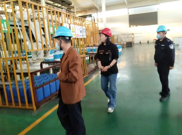2022年10月12日下午,江蘇省公安廳、南通市公安局、海安市公安局領(lǐng)導、專家一行蒞臨南通科星化工股份有限公司進行危險化學品倉儲及化工生產(chǎn)現(xiàn)場檢查,科星公司副總經(jīng)理劉小燕、安全總監(jiān)劉元才陪同檢查。