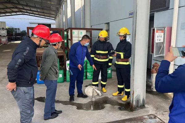 檢查組一行詳細查看了生產(chǎn)現(xiàn)場消防區(qū)域情況,通過聽取匯報、設(shè)備實操等方式對科星消防措施落實和應(yīng)急能力進行了全面抽查和現(xiàn)場指導。