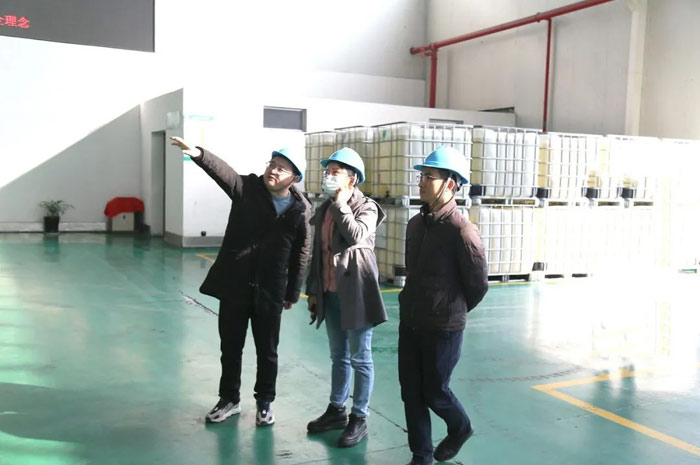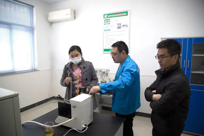 隨后,考察組一行來到科星生產基地,科星技術總工程師王一助、技術副總王凱華和副總經理劉小燕對生產現場進行了詳細介紹,考察組查看了生產車間、中控室、倉庫等現場,對生產原料嚴格把關、油品質量嚴格把控等有了清晰了解。