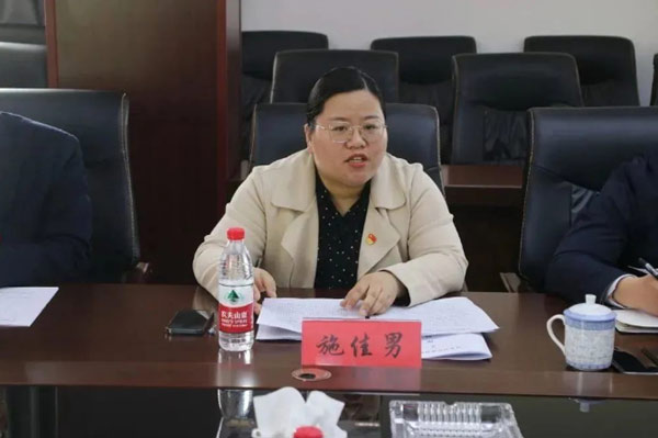白甸鎮組織委員施佳男對海安組織工作的落實部署作詳細匯報。