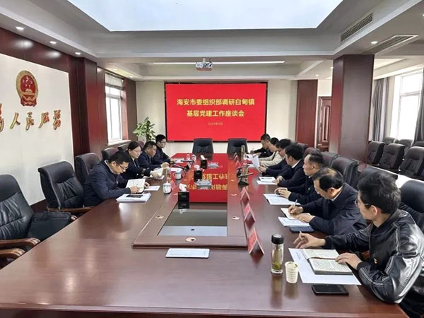 2023年4月22日上午,海安市委組織部常務副部長、“兩新”工委書記、黨建辦主任吳蘭率市委組織部職能科室相關負責人來白甸鎮調研基層黨建工作。白甸鎮黨委書記蔣增鵬、黨委副書記崔君、組織委員施佳男、南通科星化工股份有限公司黨支部吳龍鐵作為企業代表參加活動。
