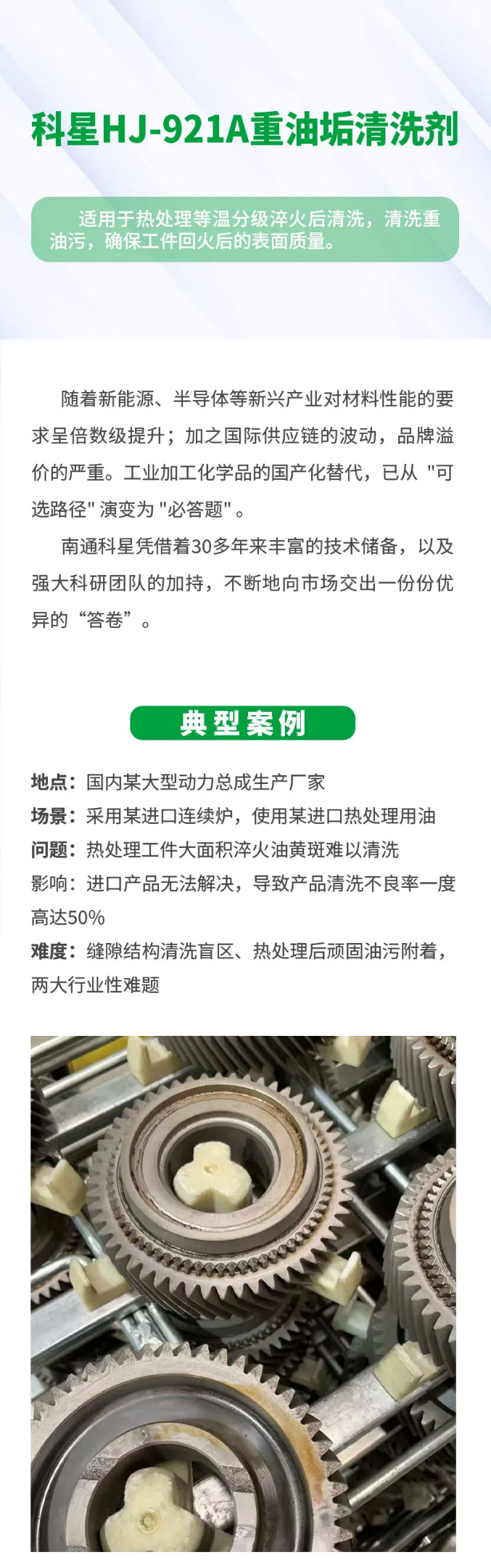 解決熱處理工藝清洗難題,爭做國產替代行業典范——科星HJ-921A重油垢清洗劑