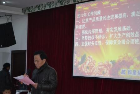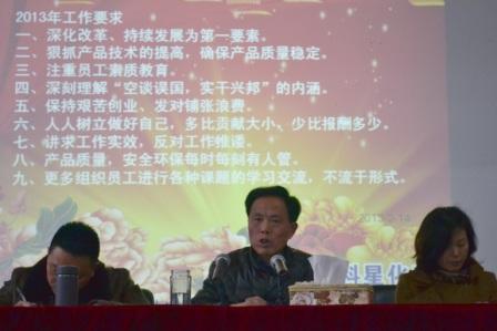 2月14日,在公司禮堂舉行了“2012年總結表彰暨2013年新春茶話會”,出席會議的有全體員工及應邀家屬。付士超總經理主持了會議。
