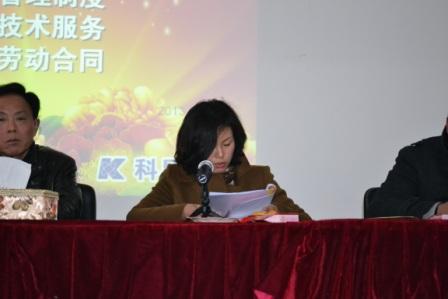 財務總監吳桂紅宣讀了公司各項制度:《公司勞動管理制度》、《財務管理制度》、《銷售技術服管理制度》。