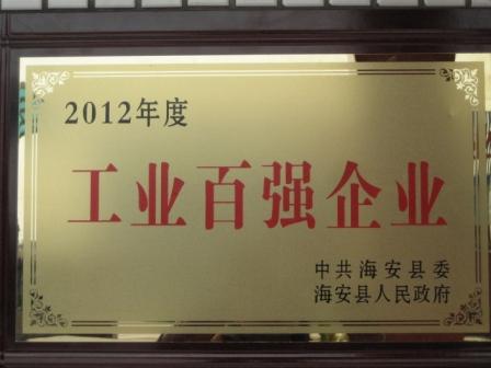 2月17日上午9點,在海安體藝館召開了“海安縣2012年度總結表彰大會”,我公司被邀參加了會議。同時我公司被評為“縣工業百強企業”的光榮稱號!我們將再接再厲,為社會做出積極的貢獻!